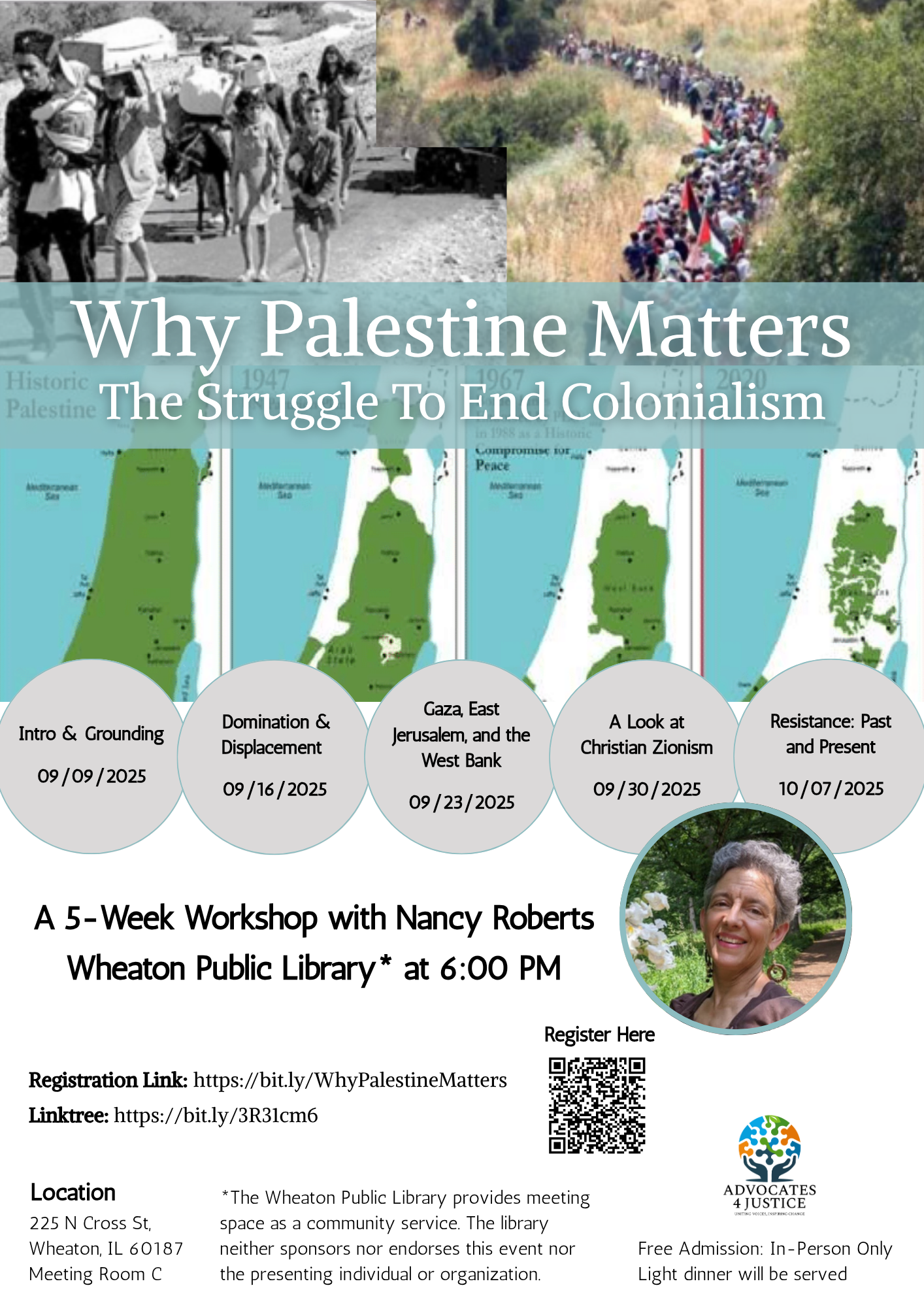 Join us for a screening of the Academy Award-Winning documentary No Other Land — a gripping, unforgettable story of land, loss, and resistance in Palestine. This powerful film has moved audiences worldwide and is now coming to Lake Forest. ️ Wednesday, October 22, 2025 6:00 PM Gorton Center – 400 E. Illinois Rd., Lake Forest, IL 60045 Followed by a Panel...